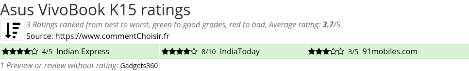 Theses reviews and tests from Laptops magazines and websites give 3 ratings, we get this average rating to this Asus product : 3.7/5.