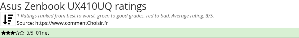 Asus Zenbook UX410UQ review : We found only one review on this product, so it sounds difficult to give a global advice, this average rating of 3/5 may not be representative.