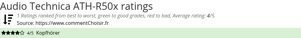 Theses reviews and tests from Headphones magazines and websites give 1 ratings, we get this average rating to this Audio Technica product : 4/5.