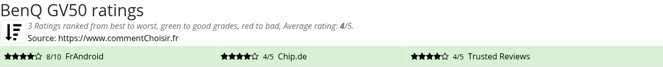 Theses reviews and tests from Video Projectors magazines and websites give 3 ratings, we get this average rating to this BenQ product : 4/5.