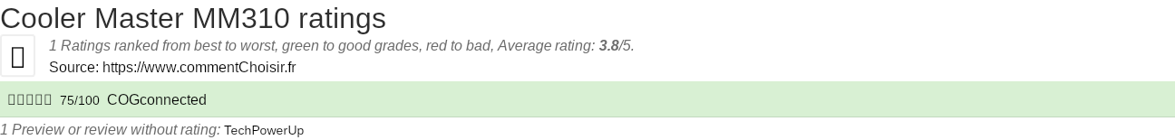 Cooler Master MM310 review : We found only one review on this product, so it sounds difficult to give a global advice, this average rating of 3.8/5 may not be representative.