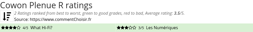 Theses reviews and tests from magazines and websites give 2 ratings, we get this average rating to this Cowon product : 3.5/5.