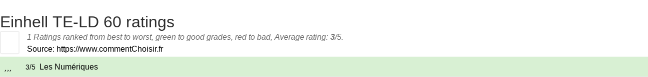- 1 reviews and opinions with 1 ratings for Einhell TE-LD 60