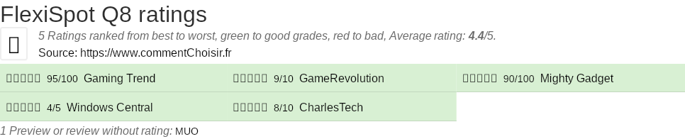 Theses reviews and tests from Gaming and Streaming magazines and websites give 5 ratings, we get this average rating to this FlexiSpot product : 4.4/5.