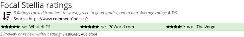 Theses reviews and tests from Headphones magazines and websites give 3 ratings, we get this average rating to this Focal product : 4.7/5.