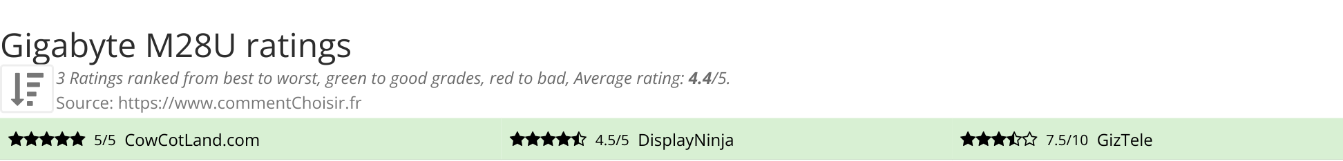 Theses reviews and tests from Monitors magazines and websites give 3 ratings, we get this average rating to this Gigabyte product : 4.2/5.