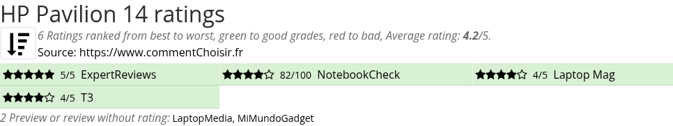 Theses reviews and tests from Laptops magazines and websites give 6 ratings, we get this average rating to this HP product : 4.2/5.
