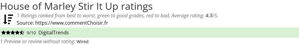 Theses reviews and tests from Headphones magazines and websites give 1 ratings, we get this average rating to this House of Marley product : 4.5/5.