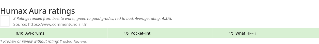 Theses reviews and tests from Media Players magazines and websites give 3 ratings, we get this average rating to this Humax product : 4.2/5.
