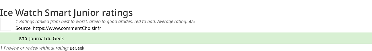 Ice Watch Smart Junior review : We found only one review on this product, so it sounds difficult to give a global advice, this average rating of 4/5 may not be representative.