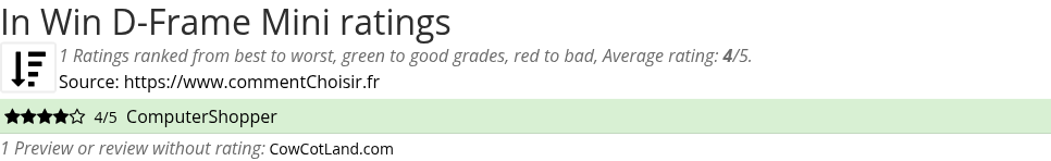 Theses reviews and tests from Components magazines and websites give 1 ratings, we get this average rating to this In Win product : 4/5.