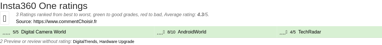 Theses reviews and tests from Camcorders magazines and websites give 4 ratings, we get this average rating to this Insta360 product : 4.4/5.