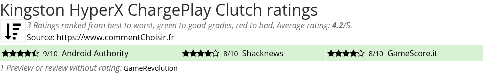 Theses reviews and tests from Gaming and Streaming magazines and websites give 3 ratings, we get this average rating to this Kingston product : 4.2/5.