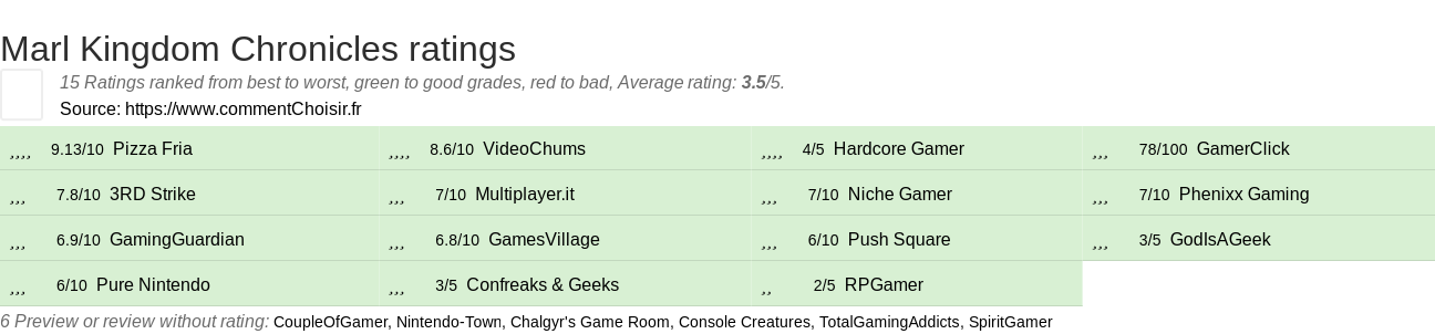 Pros and cons for Marl Kingdom Chronicles List of reviews and ratings