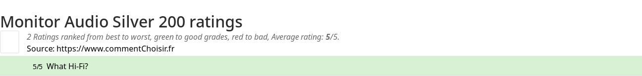 Theses reviews and tests from Speakers magazines and websites give 2 ratings, we get this average rating to this Monitor Audio product : 5/5.