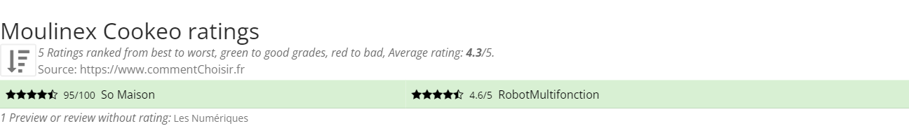 Theses reviews and tests from Kitchen magazines and websites give 5 ratings, we get this average rating to this Moulinex product : 4.2/5.