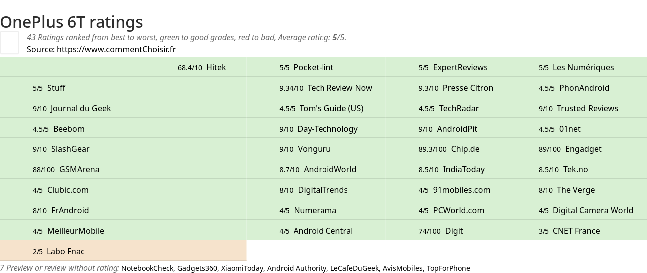 | 4/5 Android Central | 74/100 Digit | 3/5 CNET France |