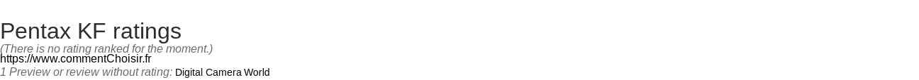 Check all the 1 reviews find on Cameras Pentax KF, with the 0 ratings, comments, pros & cons from the reviewers.