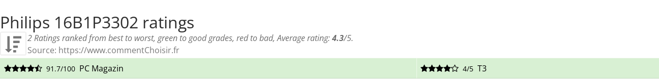 Philips 16B1P3302 review : With an average rating of 4.3/5, you can buy Philips 16B1P3302 with your eyes closed (or almost). The opinions of the testers seem unanimous !