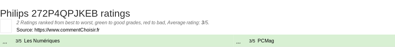 Theses reviews and tests from Monitors magazines and websites give 2 ratings, we get this average rating to this Philips product : 3/5.