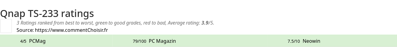 Theses reviews and tests from Video Games magazines and websites give 3 ratings, we get this average rating to this Qnap product : 3.8/5.
