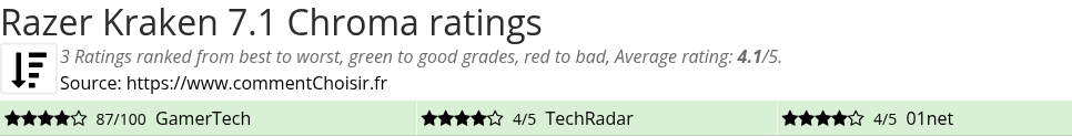 Razer Kraken 7.1 Chroma review : With an average rating of 4.1/5, you can buy Razer Kraken 7.1 Chroma with your eyes closed (or almost). The opinions of the testers seem unanimous !