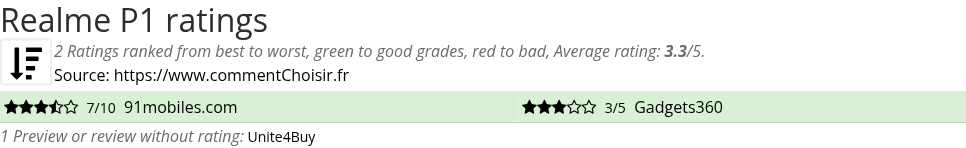 Theses reviews and tests from Smartphones magazines and websites give 2 ratings, we get this average rating to this Realme product : 3.3/5.