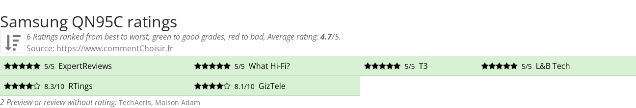 Samsung QN95C review : With an average rating of 4.8/5, you can buy Samsung QN95C with your eyes closed (or almost). The opinions of the testers seem unanimous !
