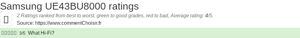Theses reviews and tests from Televisions magazines and websites give 2 ratings, we get this average rating to this Samsung product : 4/5.
