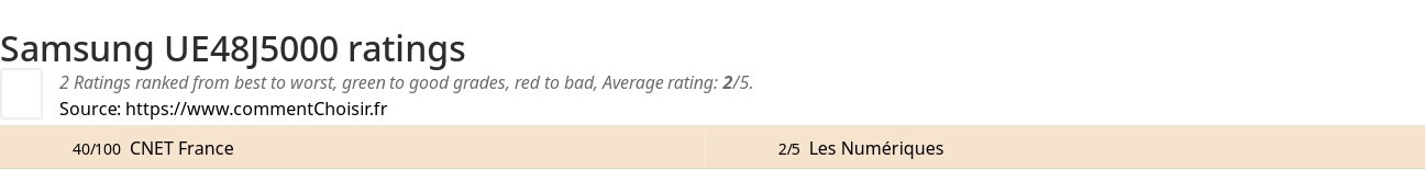 | 10/10 RTings | 40/100 CNET France | 2/5 Les Numériques |