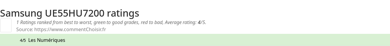 Theses reviews and tests from Televisions magazines and websites give 2 ratings, we get this average rating to this Samsung product : 4.5/5.