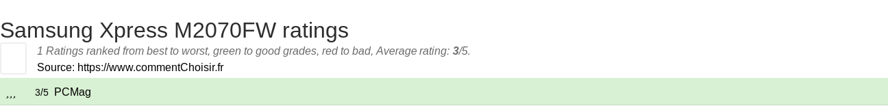 Theses reviews and tests from Printers magazines and websites give 1 ratings, we get this average rating to this Samsung product : 3/5.