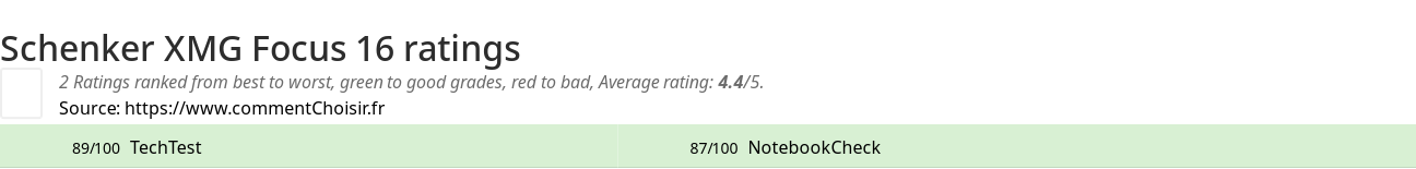 Theses reviews and tests from Laptops magazines and websites give 2 ratings, we get this average rating to this Schenker product : 4.4/5.