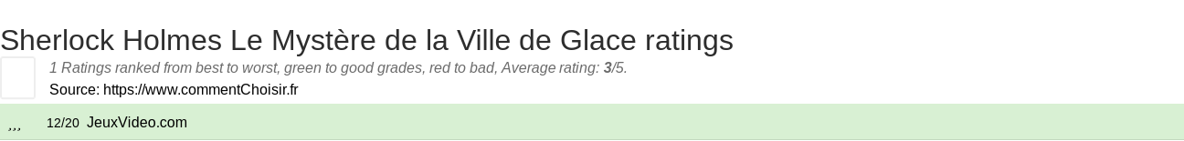 Sherlock Holmes Le Mystère de la Ville de Glace review : We found only one review on this product, so it sounds difficult to give a global advice, this average rating of 3/5 may not be representative.