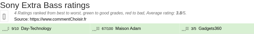 Theses reviews and tests from Headphones magazines and websites give 4 ratings, we get this average rating to this Sony product : 3.8/5.