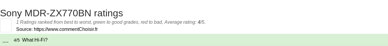 Theses reviews and tests from Headphones magazines and websites give 1 ratings, we get this average rating to this Sony product : 4/5.