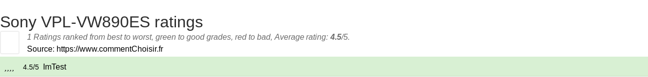 Theses reviews and tests from Video Projectors magazines and websites give 1 ratings, we get this average rating to this Sony product : 4/5.
