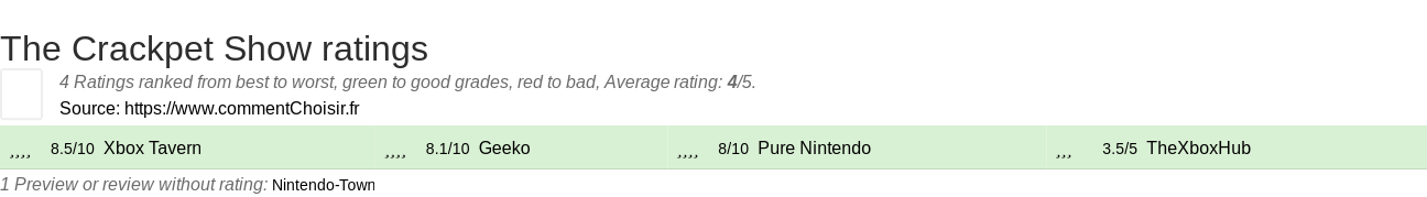 Theses reviews and tests from Video Games magazines and websites give 4 ratings, we get this average rating to this The Crackpet Show product : 3.8/5.