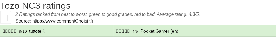 Theses reviews and tests from Video Games magazines and websites give 2 ratings, we get this average rating to this Tozo product : 4.3/5.