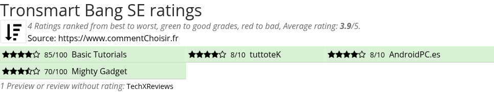 Theses reviews and tests from Speakers magazines and websites give 4 ratings, we get this average rating to this Tronsmart product : 3.9/5.