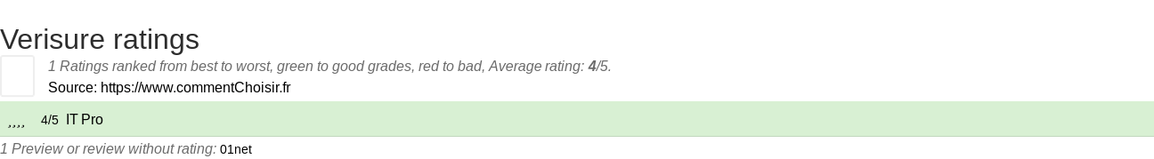 Theses reviews and tests from Softwares magazines and websites give 1 ratings, we get this average rating to this Verisure product : 4/5.
