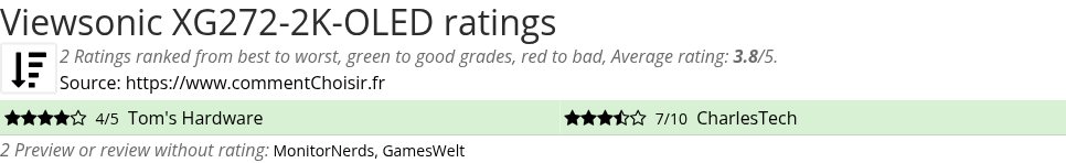 Theses reviews and tests from Monitors magazines and websites give 2 ratings, we get this average rating to this Viewsonic product : 3.8/5.