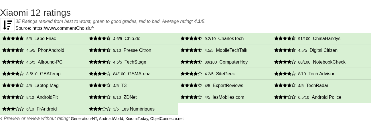 Theses reviews and tests from Smartphones magazines and websites give 35 ratings, we get this average rating to this Xiaomi product : 3.9/5.