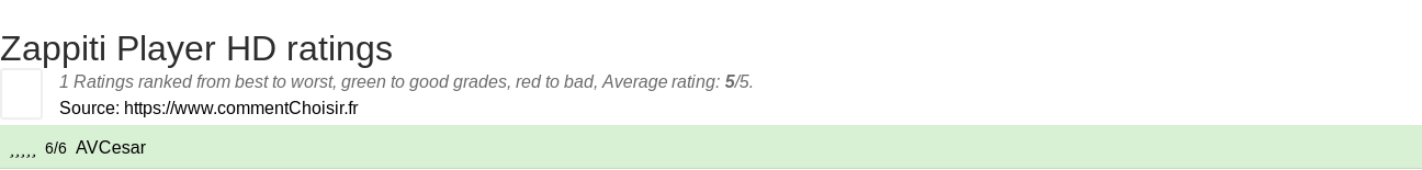 Theses reviews and tests from Media Players magazines and websites give 1 ratings, we get this average rating to this Zappiti product : 5/5.