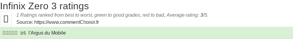 Theses reviews and tests from Smartphones magazines and websites give 1 ratings, we get this average rating to this Infinix product : 3/5.