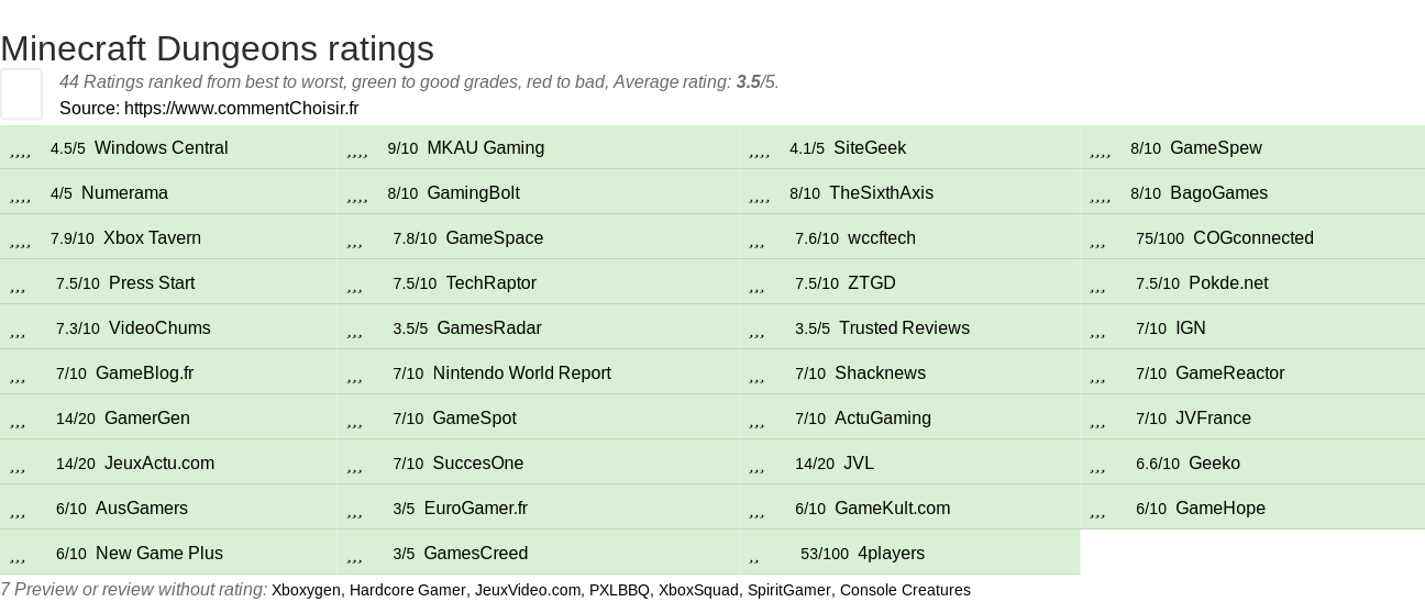 Check all the 53 reviews find on Video Games Minecraft Dungeons, with the 44 ratings, comments, pros & cons from the reviewers.