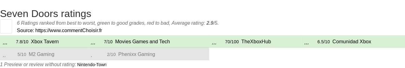 Theses reviews and tests from Video Games magazines and websites give 6 ratings, we get this average rating to this Seven Doors product : 2.8/5.