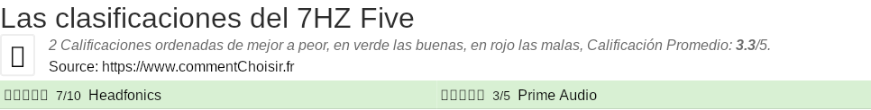 Entre estas pruebas de sitios de Internet y revistas especializadas en Auriculares, 2 dieron una calificación y obtenemos una calificación promedio de 3.3/5 para este producto 7HZ.