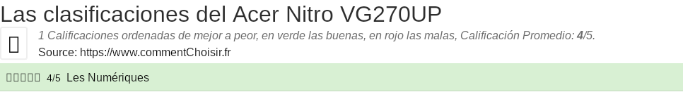 - 1 reseñas y opiniones con 1 valoraciones para el Acer Nitro VG270UP