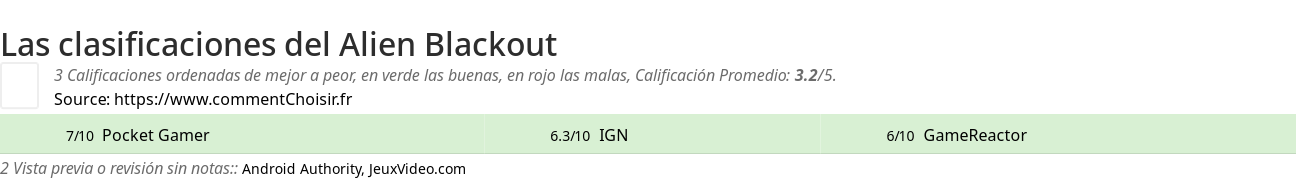 Aquí están las 5 revisiones y pruebas encontradas en el Videojuego Alien Blackout con las 3 calificaciones y comentarios de los evaluadores en su revisión.